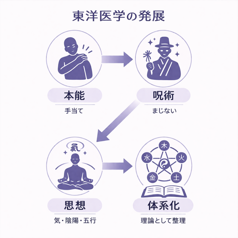 「東洋医学って何?」「西洋医学とどう違うの?」と感じている方に向けて、基本概念からわかりやすく解説します。この記事では、東洋医学の考え方や主要な古典、気・陰陽・五行といった重要な理論まで、初学者でも理解できるようにまとめています。